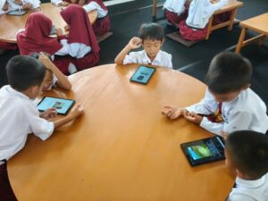Now, nearly three months later, reading with digital books has become one of the regular activities carried out with students during library visit hours. Each month, Mrs. Fajriah conducts digital reading activities with her students twice. “I see that students are becoming more motivated to read because the applications and other digital book platforms offer a wider variety of books. In addition, students also experience the ease of access when reading digital books. It is a very enjoyable activity—like playing with a gadget, but packaged in a more educational way.”